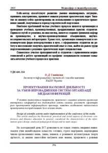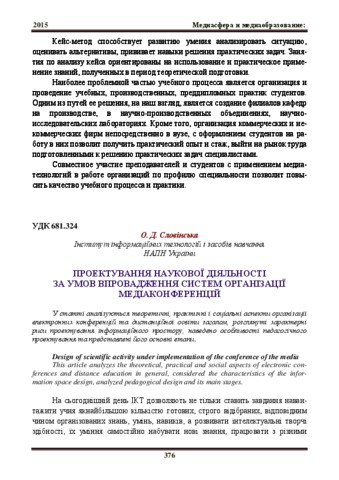 - Словінська, О.Д. (2015) Design of scientific activity under implementation of the conference of the media Медиасфера и медиаобразование: специфика взаимодействия в современном социокультурном пространстве, 1. ISSN 978-985-7088-33-1