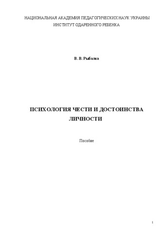 Рибалка, В.В. (2013) Psychology of honor and dignity of a personality . Institute of Gifted Child of NAPS of Ukraine, м.Київ, Україна. (Unpublished)