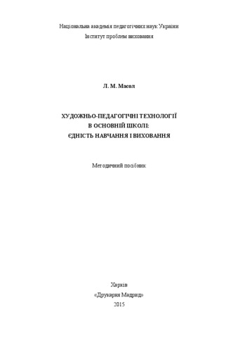 Масол, Людмила Михайлівна (2015) Arts and Educational Technologies in the Basic School: Training and Upbringing Unity . Друкарня Мадрид, м.Харків, Україна.