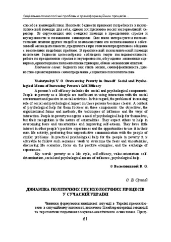 - Суший, О.В. (orcid.org/0000-0002-4364-7571) (2015) The dynamics of the political and psychological processes in contemporary Ukraine Наукові студії із соціальної та політичної психології, 35 (38). pp. 61-76.