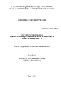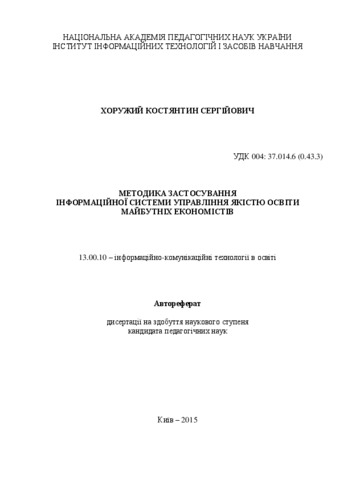- Хоружий, К.С. (2015) Methodology of using education quality management information system for future economists Dissertation candidate2 thesis, Інститут інформаційних технологій і засобів навчання.
