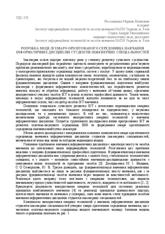 - Стрюк, А.М. and Рассовицька, М.В. (2014) Development model of cloud-oriented learning environment computing disciplines for engineering students In: Всеукраїнська науково-практична конференція молодих учених «Наукова молодь-2014» . Інститут інформаційних технологій і засобів навчання, м. Київ, Україна.