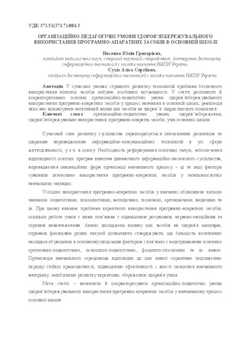 - Носенко, Ю.Г. and Сухіх, А.С. (2015) Organizational and Pedagogical Conditions of Health-Saving Use of Software and Hardware Tools in Basic School Комп'ютер у школі та сім'ї, 8 (128). pp. 52-56. ISSN 2307-9851