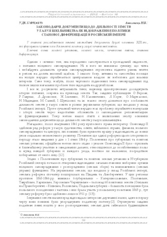 - Антонець, Наталія Борисівна (orcid.org/0000-0002-7772-9364) (2012) Legislative documents in relation to activity of zemstvos in industry of school education as reflections of politics of class differentiation are in the Russian empire Pedagogical almanac (16). pp. 255-261.