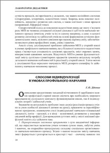 In theses author suggests on ways of individualization in terms of profile education. In high school must take into account the social context of functioning of the school. The author believes that teachers should work on personalized programs. Teachers should improve their individual styles of teaching and learning activities.