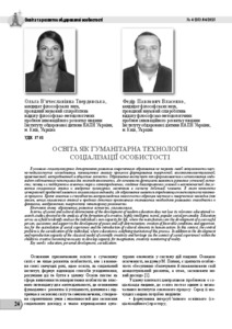 - Твердовська, О.В. and Власенко, Ф.П. (2015) Education as a humanitarian technology of individual socialization Education and Development of Gifted personality, 4 (35). pp. 24-27. ISSN 2309-3935