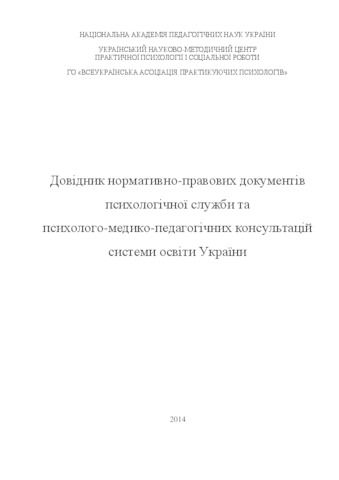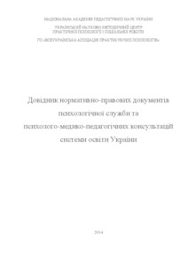 Directory of legal documents of the psychological service, psycho-medical-pedagogical consultations the Ukrainian education system has been prepared based on an update of the legal framework that regulates the activity of specialists of the psychological service of the education system. Guide recommended the heads of educational institutions of all types, the head (director) centers (offices) of practical psychology and social work, Methodists, practical psychologists and social workers, students in related disciplines.