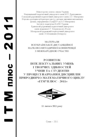 - Семеріков, С.О. (2011) Current trends in theory and methodology of teaching informatics In: Розвиток інтелектуальних умінь і творчих здібностей учнів та студентів у процесі навчання дисциплін природничо-математичного циклу «ІТМ*плюс–2011» : матеріали Всеукраїнської дистанційної науково-методичної конференції з міжнародною участю , 3 . СумДПУ імені А. С. Макаренка, м.Суми, Україна. ISBN 978–966–698–144–1