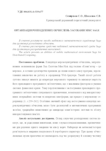 - Семеріков, С.О. and Шокалюк, С.В. (2010) The organization distributed computing tools Sage MMS Педагогічні науки: теорія, історія, інноваційні технології, 2 (4). pp. 338-345.