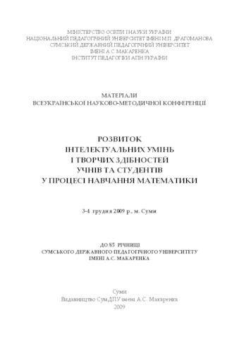 - Семеріков, С.О. and Шокалюк, С.В. (orcid.org/0000-0003-3774-1729) (2009) The organization distributed computing environments of mobile mathematical In: Розвиток інтелектуальних умінь і творчих здібностей учнів та студентів у процесі навчання математики : матеріали Всеукраїнської науково-методичної конференції (3–4 грудня 2009 р., м. Суми) . СумДПУ імені А.С.Макаренка, м.Суми, Україна. ISBN 978–966–698–144–1