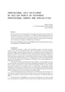 Objective trends of society development encourage substantially increased attention to the problem of person’s self-fulfilment. Its insufficient understanding determines the necessity of its theoretical justification as well as empirical study. The article presents the research aimed at determination of comparative features of professional self-fulfilment of skilled person working at 10 different lines of profession.