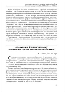 - Липова, Людмила Андріївна (2013) Mastering of fundamental natural knowledge of high school students In: Анотовані результати науково-дослідної роботи Інституту педагогіки за 2012 рік . Інститут педагогіки НАПН України, м. Київ, Україна, pp. 13-14.