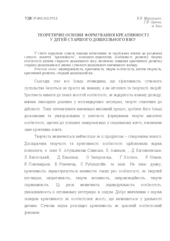 МаршицькаВ.В., Орлова Г.В. Теоретичні основи формування креативності у дітей старшого дошкільного віку.pdf Download (220kB) | Preview |