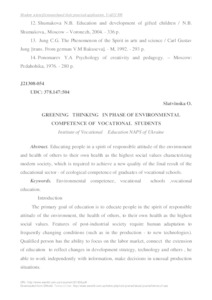 - Слатвінська, О.А. (2013) Greening thinking in phase of environmental competence of vocational students Modern scientificresearchand their practical application, J21308. pp. 1-9. ISSN 2410-6720
