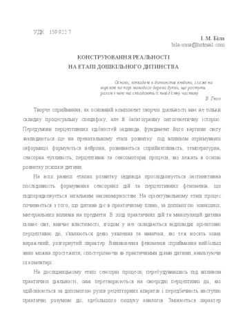 - Біла, І.М. (2015) Constructing reality during preschool childhood In: Актуальні проблеми психології особистості та міжособистісних взаємин Матеріали конференції . Аксіома, Камянець-Подільський, pp. 52-54.
