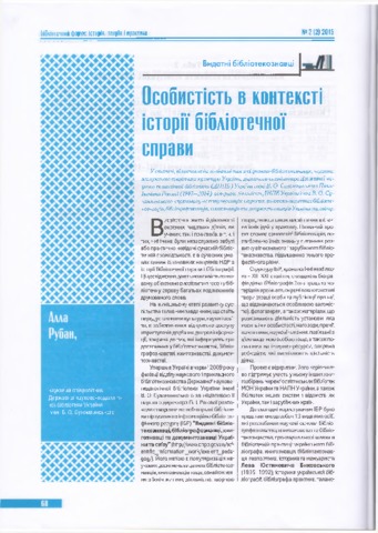 - Рубан, Алла Іванівна (2015) Personality in the context of the history of librarianship Бібліотечний форум: історія, теорія і практика, 2 (2). pp. 68-70.