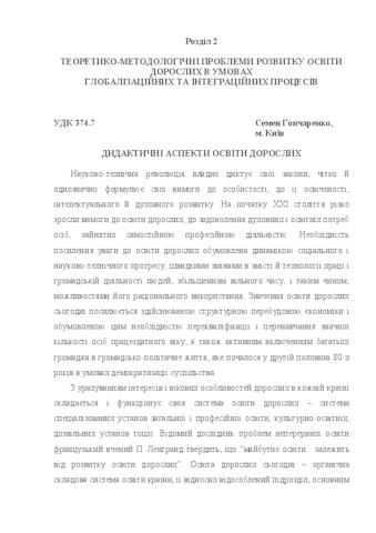 - Гончаренко, Семен Устимович (2009) Didactical aspects of adults education Освіта дорослих: теорія, досвід, перспективи (1). pp. 67-73.