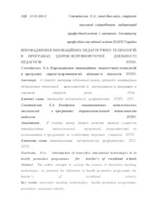 Introduction of innovative educational technologies in in health promotion programmes for teacher’s of vocational schools.