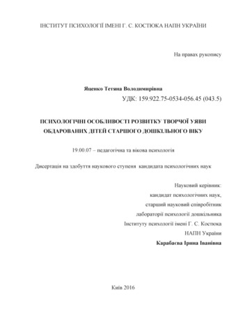 | Additional Information: | Дисертація на здобуття наукового ступеня кандидата психологічних наук за спеціальністю 19.00.07 – педагогічна та вікова психологія. – Інститут психології імені Г.С. Костюка НАПН України. – Київ, 2016. |