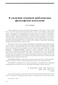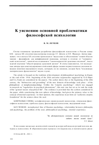 | Keywords: | metaphysical line of Russian psychology, relationship between philosophy and psychology, the problem of the soul, philosophical psychology, internal experience |