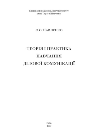 - Павленко, Олена Олександрівна (2003) The theory and practice of teaching of business communication Project Report. Академія митної служби України, м. Дніпропетровськ, Україна.