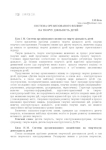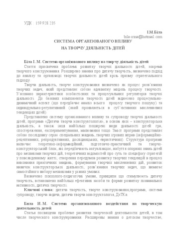 - Біла, І.М. (2015) The system is organized influence on the creative activity of children Проблеми сучасної психології, 29. pp. 55-70. ISSN 2227-6246
