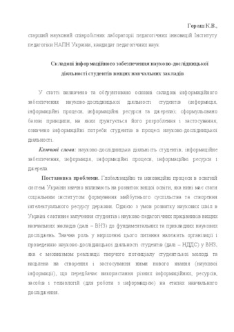 | Keywords: | students’ research work, information, information process, information support, information resource and sources. |