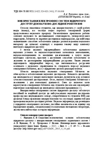 The current generation of students in its work to media innovations, increasingly prefer electronic submission of scientific product. Perennial practice of global scientific and research communities, university departments, libraries and individual researchers confirmed that the most economical way to ensure the rapid dissemination of scientific material to the audience is to provide this type of content Instant Access.