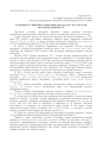 - Шиненко, М.А. (2016) Features of use RINTS for the analysis of research results In: Звітна науков-практична конференція Інституту інформаційних технологій і засобів навчання НАПН України . Інститут інформаційних технологій і засобів навчання НАПН України, м. Київ, Україна, pp. 1-4.