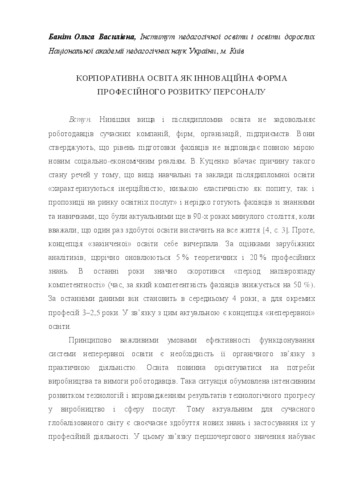 The author explained the role and importance of corporate education as innovative forms of professional development.