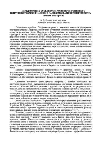 - Головко, Микола Васильович (2011) Background and davelopment features of domestic textbook creation in physics in times of democratic transformation (early 1960s) Проблеми сучасного підручника (11). pp. 269-276.