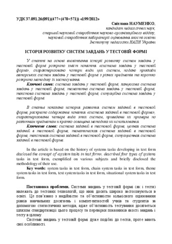 - Науменко, С.О. (2013) The history of systems tasks developing in test form Нова педагогічна думка, 4 (76). pp. 16-19.