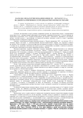 Scientific and pedagogical publications of the end XIX - the beginning of the XX century as the sources of studying of the physics didactics history in Ukraine (deposited 30 Jun 2015 15:07)