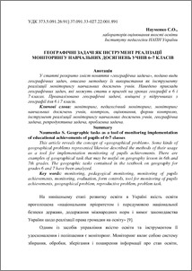 Geographic tasks as a tool of monitoring implementation of educational achievements of pupils of 6-7 classes (deposited 26 Jun 2014 12:51)