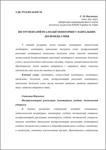 | Keywords: | monitoring, pedagogical monitoring, monitoring of disciple achievements, tools of monitoring disciple achievements, test, tests, tasks closed type, open type tasks. |