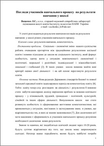 - Ващенко, Л.С. (2013) Participants' views on the results of the learning process in school Хімія і біологія у школі, 5. pp. 36-39.