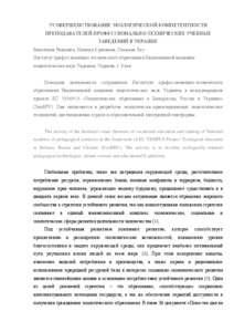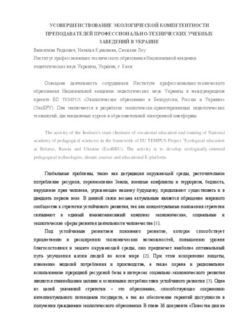 The activity of the Institute's team (Institute of vocational education and training of National academy of pedagogical sciences) in the framework of EU TEMPUS Project "Ecological education at Belarus, Russia and Ukraine (EcoBRU). The activity is to develop ecologically-oriented pedagogical technologies, distant courses and educational E-platform.