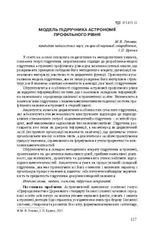 - Головко, Микола Васильович and Крячко, Іван Павлович (orcid.org/0000-0002-3595-5478) (2015) Manual model of astronomy profile Проблеми сучасного підручника, 1 (15). pp. 127-136.
