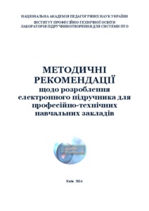 The publication is dedicated to the integrated treatment of didactic and methodological issues of design and creation of electronic textbooks, problems of formation of scientifically based psychological and pedagogical foundations of the development of modern electronic textbooks and their use in the classroom. In this paper the authors revealed peculiarities of subject content and methods of presentation of educational problems in the electronic textbook. The technology of creating an electronic textbook and noted crafts the use of electronic learning platforms. An important component of the recommendations is the section on creation, formation and use of the vocational education system of Ukraine content library. The publication aims to help teaching staff of vocational education institutions, graduate students, doctoral students, and anyone interested in the problems of development and implementation of electronic tools in the learning process.