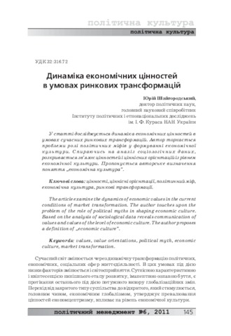 - Шайгородський, Ю.Ж. (2011) The dynamics of economic values in terms of market transformations Політичний менеджмент, 6 (51). pp. 145-157. ISSN 2078-1873