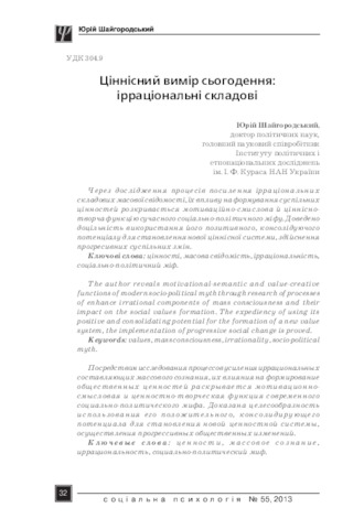 - Шайгородський, Ю.Ж. (2013) Value dimension of modernity: the rational components Соціальна психологія (55). pp. 32-39. ISSN 2078-189X