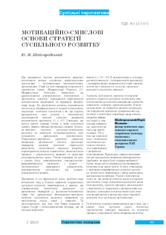 - Шайгородський, Ю.Ж. (2015) Motivational-semantic grounds of social development strategy Стратегічна панорама, 1.