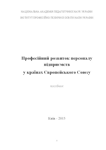 The guide, based on analysis of existing documents, materials, comparative studies of the European Centre for the Development of vocational education and training, monographs and European periodicals, describes the current state and trends of professional development companies in the European Union in the context of the strategy "Europe 2020". The features of current models and financing training and staff development companies in the EU. Analyzed didactic principles of training teaching staff for vocational education and training in the European Union. The recommendations for use in Ukraine the European experience implementing training programs and staff development at work. For scientists, policy makers in education, professional education workers, teachers, managers, employers and students.