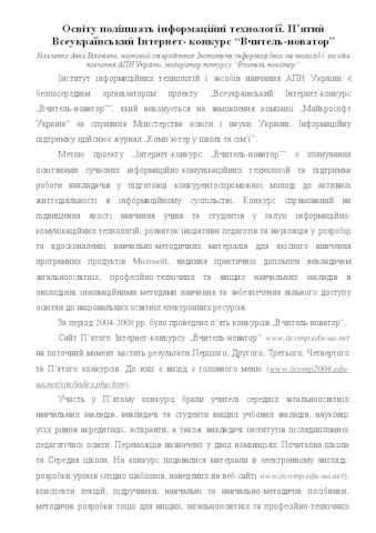 | Keywords: | Information Technology, Internet fifth Ukrainian competition "Innovative Teachers" |
