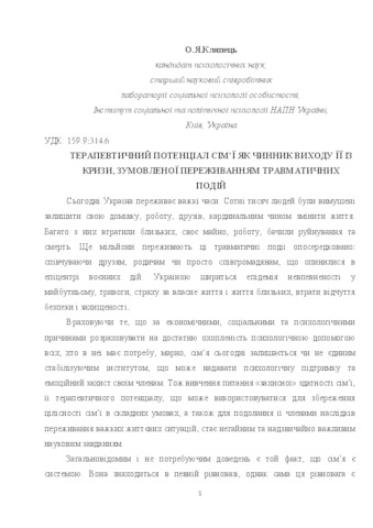 | Keywords: | traumatic events, therapeutic potential of the family, family resources, a psychotherapy function of the family |