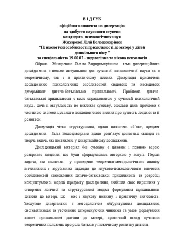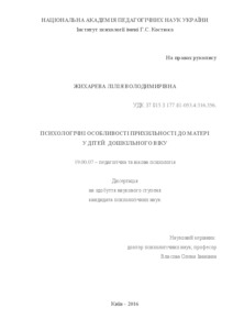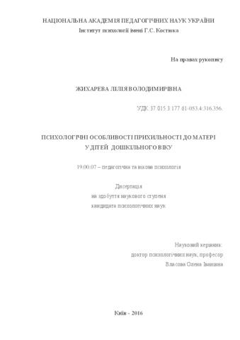 - Жихарева, Л.В. (2016) Psychological features of attachment to mother in preschool children Dissertation candidate thesis, Інститут психології імені Г.С. Костюка.