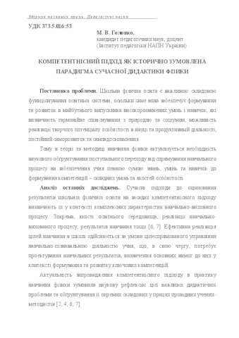 - Головко, Микола Васильович (2011) Competence approach as a historically predefined paradigm of modern physics didactics Збірник наукових праць Бердянського державного педагогічного університету (Педагогічні науки), 4. pp. 76-82.