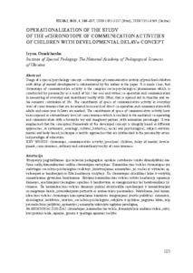 - Омельченко, Ірина Миколаївна (2015) Operationalization of the study of the «chronotope of communication activities of children with developmental delay» concept Scientific journal TILTAI/BRIDGES/ BRÜCKEN, 3 (72). pp. 91-104. ISSN ISSN 1392-3137