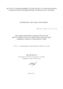 - Литвинова, С.Г. (2011) Methodology to use the virtual class technology by the teacher for individual student training Dissertation candidate2 thesis, Інститут інформаційних технологій і засобів навчання.