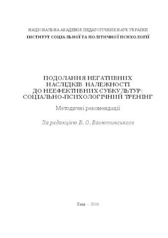 - Васютинський, В.О. (orcid.org/0000-0002-9808-4550) (2016) Overcoming the negative effects of belonging to ineffective subcultures: social and psychological training [Teaching Resource]